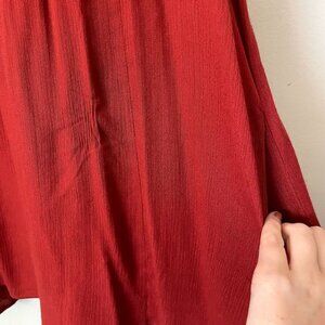 A beautiful red top with embroidered flowers on the sleeves and a full slip. Made of 100% rayon. Labeled a women's size large.