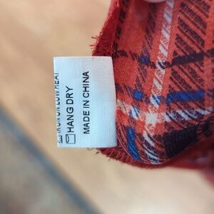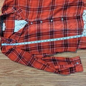 Altar'd State red plaid sheer roll-tab sleeve button-up blouse w/ lace panel, L