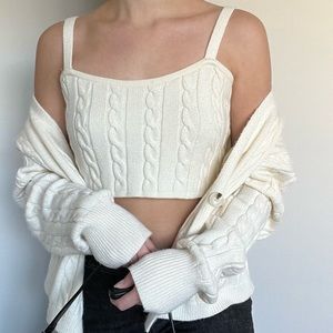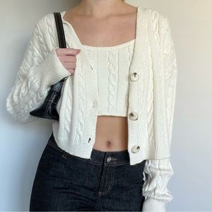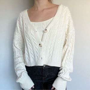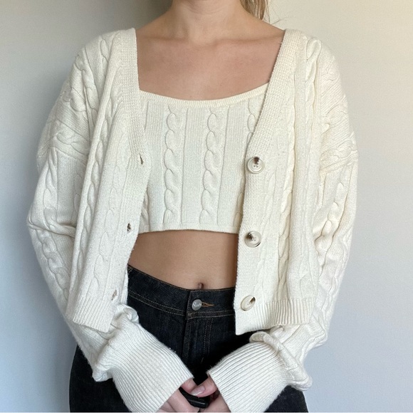 Altar’d State cableknit cropped cardigan sweater 2 piece set. Thick material and so soft! Brand new condition. Slightly off white/cream color.