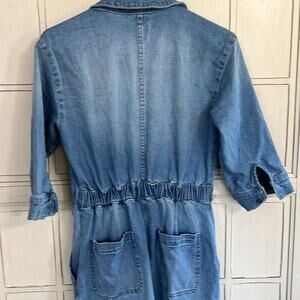 Altar’d State size XS denim jumpsuit with 3/4 length sleeves. Excellent condition. Apockets in the front and back. Elastic in the back of the waist. Measures 19” from armpit to armpit. 13 1/2” across the waist when not stretched at all. Inseam is 25” and total length is 53”.