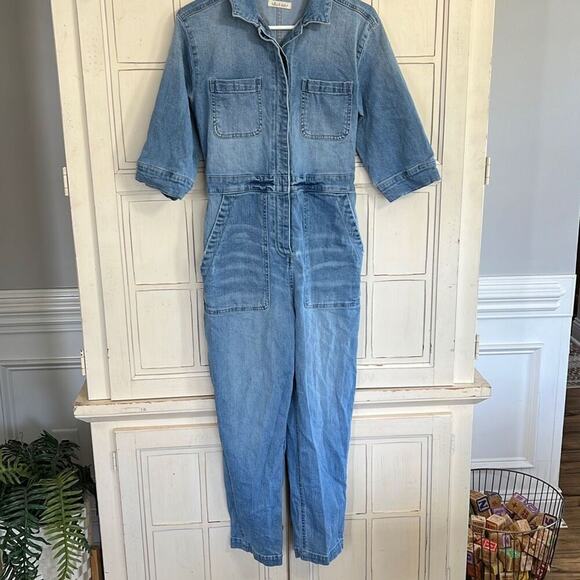 Altar’d State size XS denim jumpsuit with 3/4 length sleeves. Excellent condition. Apockets in the front and back. Elastic in the back of the waist. Measures 19” from armpit to armpit. 13 1/2” across the waist when not stretched at all. Inseam is 25” and total length is 53”.