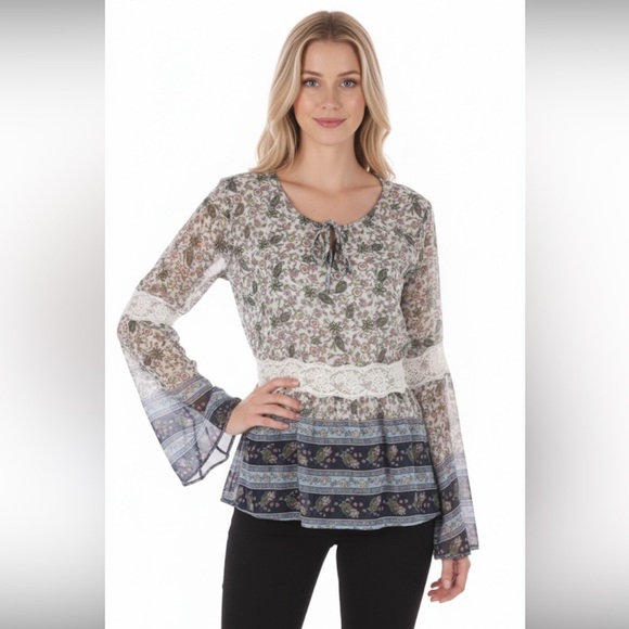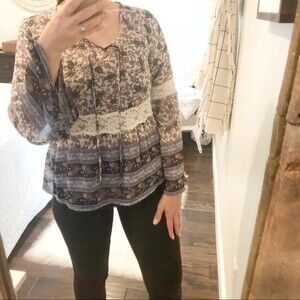 Altar’d State boho lace floral bell sleeve blouse like new. Size small