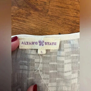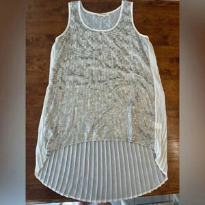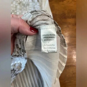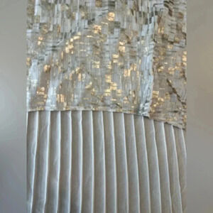 Cream and gold metallic front with pleated back. High low. Beautiful
