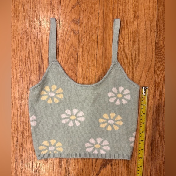 Altar'd State with white and yellow daisy patterns Green Floral Knit Crop Top XS