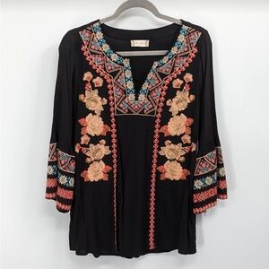 Altar’d State women’s black blouse with embroidery bell sleeve size, medium blouse is an excellent preowned condition