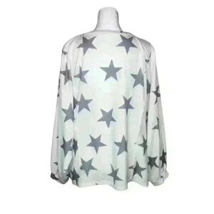 Altar'd State women's oversized white and gray star blouse dolman sleeve medium. In excellent pre-owned condition. Some minimal wear as shown. A bit of piling. Measurements are approximate and taken flat.