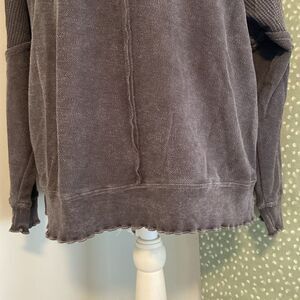 Altar'd State Charcoal Gray Two-Tone Fabric Long Sleeve Oversize Blouse Size S