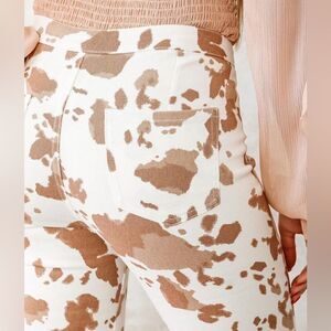 Your favorite high rise now with an exaggerated flare bottom opening and on-trend cow print. You don’t want to miss out on these bottoms because they won’t last long!