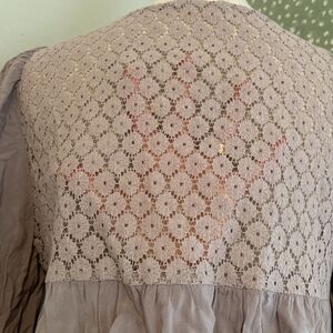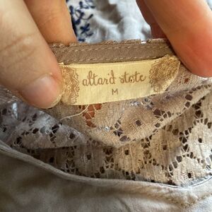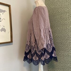 Altar'd State Gray & Navy Blue Embroidered Balloon Sleeve Tunic Blouse Size Med