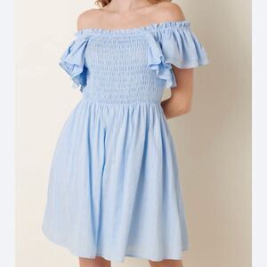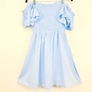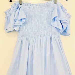 Altar’d State Light Blue Smocked Stretch Ruffle Short Sleeve Off Shoulder Dress