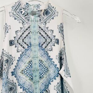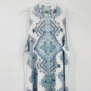 Altar'd State Size Medium Blue & White Boho Jersey Knit Mock Neck Dress