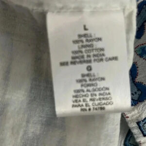 In excellent condition and is lined. From armpit to armpit is about 21 inches and 35 inches long. It has a high low hem. It is lined. Comes from a smoke free home and all items have been cleaned.