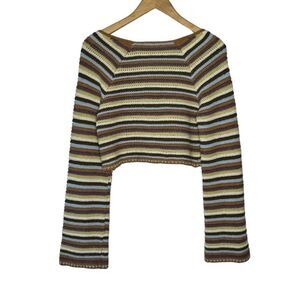 Altar'd State Women's Layla Crochet Striped Cropped Top Size Large