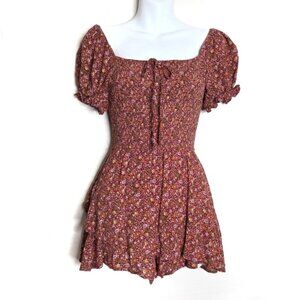 Altar'd Stater Red Floral Print Ruffled Smocked Romper Women's Suze Small