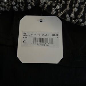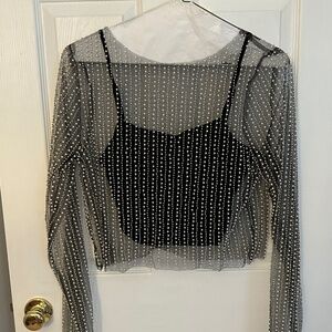 Prepare to bedazzle them! Black cami is attached to a sheer fabric embellished with small faux pearls. Size Large.
