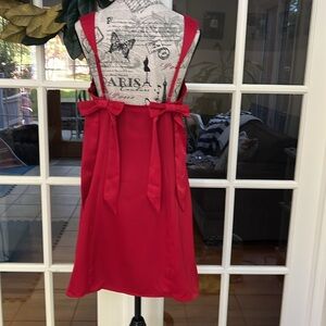 Deep reed Square-neck satin mini dress with cute bows on the back and adjustable straps.