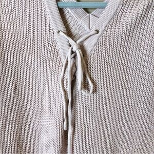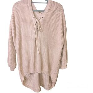 Altar’d state Lace Up V Neck High Low Sweater Pink Size Small