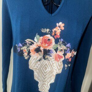 This gorgeous Altar'd State long sleeved tunic features a unique bull floral design, perfect for making a statement. The tunic is in excellent used condition (EUC), ensuring that it is ready to become a stylish addition to your wardrobe. Its comfortable fit and striking pattern make it an ideal choice for any casual occasion or as a standout piece for a night out. Don't miss out on the opportunity to own this eye-catching garment.