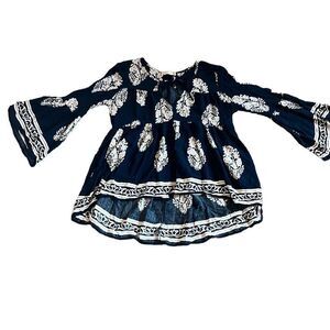 Altar'd State EUC Blue Tan Boho Print Bell Sleeve High Low Front Tie Top Sz XS
