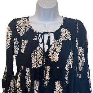 Altar'd State Blue Tan Boho Print Bell Sleeve High Low Front Tie Top XS Flowy