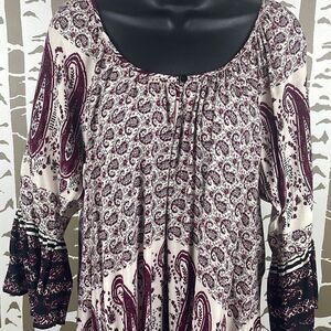 Altar’d State Boho Paisley Print Baby Doll Dress 3/4 Sleeves M