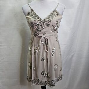 Altar'd State Champagne Beaded Sparkle Faux Wrap Mini Dress Size Small
