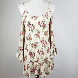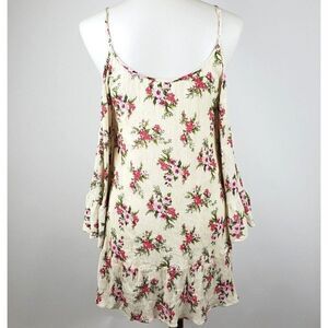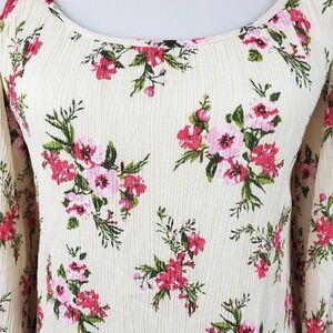Altar'd State Cold Shoulder Floral Top 3/4 Sleeve Tunic Scoop Neck Cream sz S