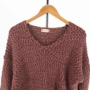 Altar’d State Mauve Eyelash Fuzzy Sweater Long Sleeve Soft V-Neck size S/M
