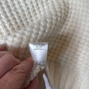 Altar'd State Pearled Ivory Crew Neck Sweater with Pearl Embellishments. Size Medium. This cream sweater from Altar'd State features a stylish crew neck and a modern cropped design. The waffle knit texture adds depth, while the pearl-like embellishments on the sleeves offer a touch of elegance. Perfect for cooler weather, this medium-weight sweater combines comfort with chic style. New with tags.
