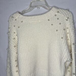Altar'd State Pearled Ivory Crew Neck Sweater with Pearl Embellishments. Size M.