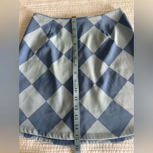 Blue checkerboard mini skirt. Zips up. Excellent condition. Retro vibe. Made in USA