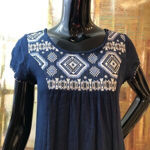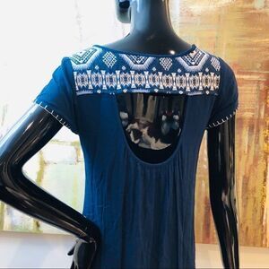 Altar’d State Women’s Blue Embroidered Bodice Short Sleeve