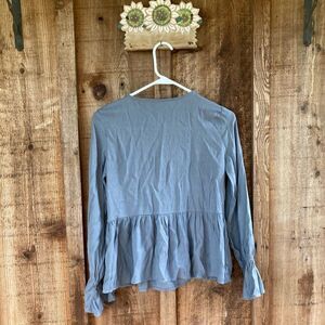 Altar’d State Floral Embroidered Lace Up Autumn Tassel Top in Blue
