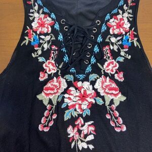 Size small. Double layer lace up front embroidered in excellent condition no flaws