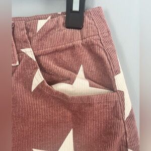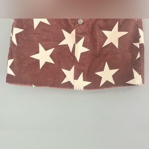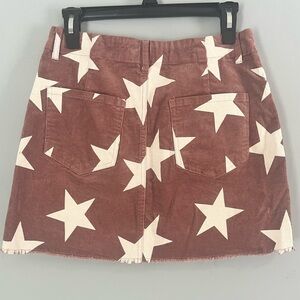 Altar’s State Corduroy Skirt Mauve with White Stars Sz M Raw Hem Button Fly