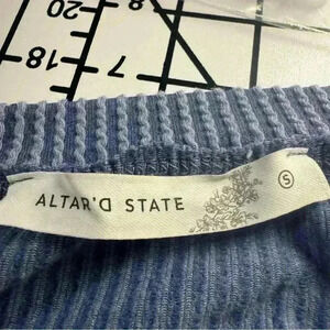 Altar’s State Small Ribbed V Neck Pullover Sweater Long Sleeves High Low Blue