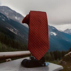 Altea MILANO 100 % Silk Necktie Hand Made In ITALY Red, Gold, Black Geometric