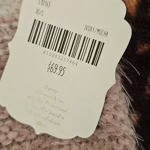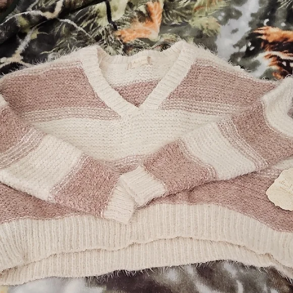 Soft, comy, long sleeve sweater. size xs/s. NWT Colors are a soft cream with brown and tan stripes.