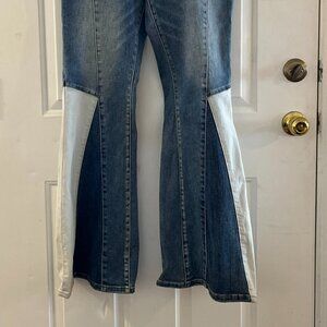 Alter'd State Blue/White Stretch Flare Wide-Leg High-Rise Festival Jeans Sz 30