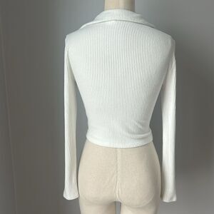Alter’d State Cropped Collared Ribbed Sweater Top - Cream/White - Women’s Small