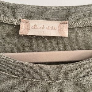 Alger’d State sage green mini dress with adjustable ruched sides with strings. Sleeveless.
