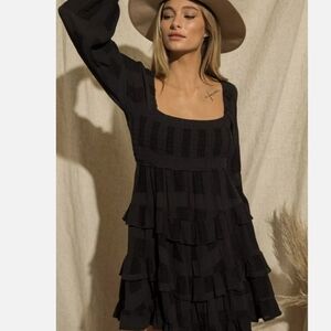 Alter'd State Witchy Whimsigoth Black Tiered Goring square Neck Dress Sz XS
