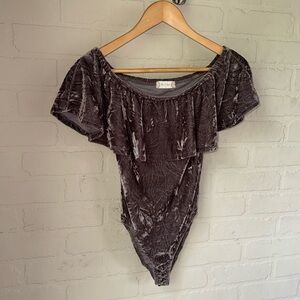 Alter’d State bodysuit off shoulder velvet small stretch purple ruffle boho