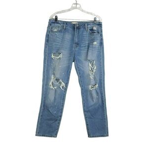 Alter'd State Destressed Straight Leg Jeans Size 30 Light Wash Blue Denim 34X27