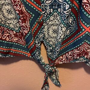 Beautiful maroon, blue and white patterned blouse