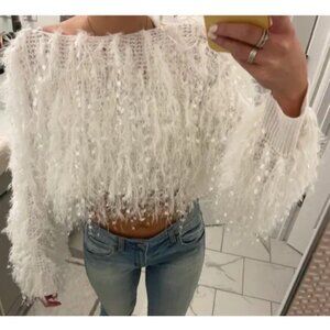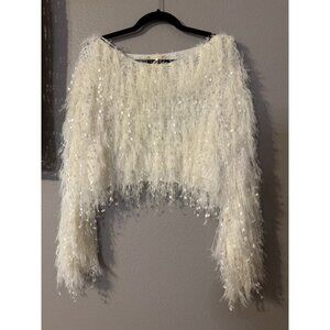 Altered State Ivory White Fuzzy Sweater XS Women's Pullover Cropped
