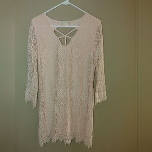 Altered State Pink Lace Dress with 3/4 Sleeves, Size Large