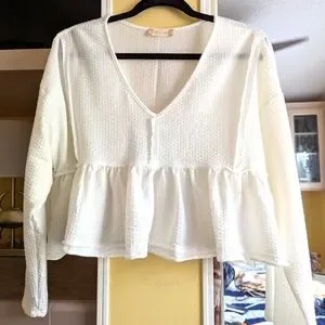 This cute top is flowy and hits at the buckle line. never worn but no tags