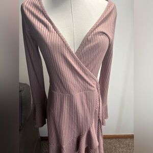 Altered state Pink Waffle Knit Flounce Sleeve Ruffle Dress size Medium Womens