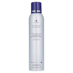 The Alterna Caviar Anti-Aging Professional Styling High Hold Finishing Spray is a dry and lightweight, touchable high hold hair spray. Lasting hold for elegant styles. Strong hold, dry touch. Free from stiffness, stickiness or flaking. Hold level 5.